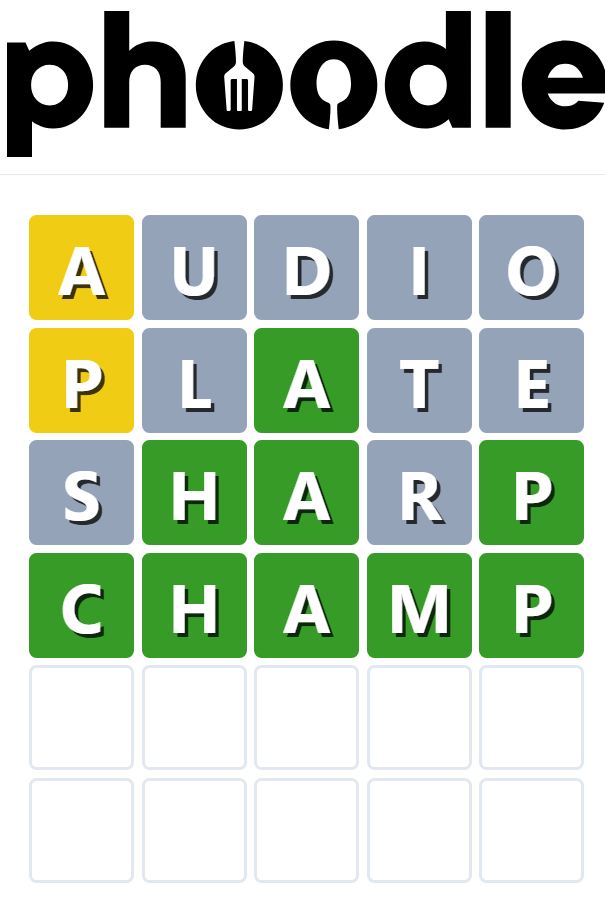 Phoodle is another Wordle-inspired game we have found, which is another food-related game. Players need to guess the five-letter food-related term, which can be anything from appliances to famous chefs and more.