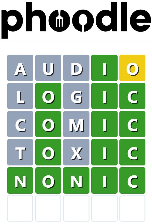Phoodle is another Wordle-inspired game we have found, which is another food-related game. Players need to guess the five-letter food-related term, which can be anything from appliances to famous chefs and more.