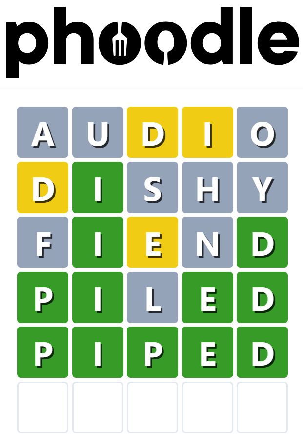 Phoodle is another Wordle-inspired game we have found, which is another food-related game. Players need to guess the five-letter food-related term, which can be anything from appliances to famous chefs and more.