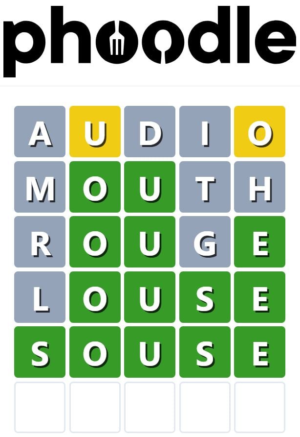 Phoodle is another Wordle-inspired game we have found, which is another food-related game. Players need to guess the five-letter food-related term, which can be anything from appliances to famous chefs and more.
