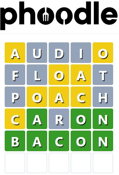 Phoodle is another Wordle-inspired game we have found, which is another food-related game. Players need to guess the five-letter food-related term, which can be anything from appliances to famous chefs and more.