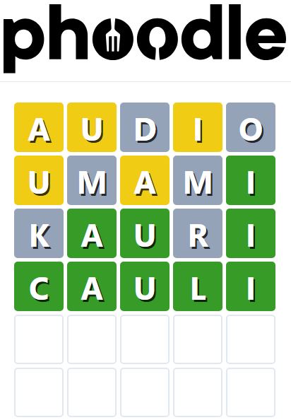 Phoodle is another Wordle-inspired game we have found, which is another food-related game. Players need to guess the five-letter food-related term, which can be anything from appliances to famous chefs and more.