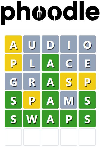Phoodle is another Wordle-inspired game we have found, which is another food-related game. Players need to guess the five-letter food-related term, which can be anything from appliances to famous chefs and more.
