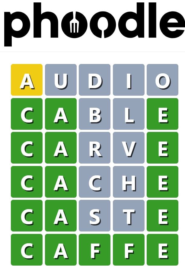 Phoodle is another Wordle-inspired game we have found, which is another food-related game. Players need to guess the five-letter food-related term, which can be anything from appliances to famous chefs and more.