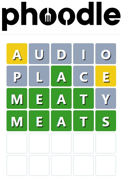 Phoodle is another Wordle-inspired game we have found, which is another food-related game. Players need to guess the five-letter food-related term, which can be anything from appliances to famous chefs and more.