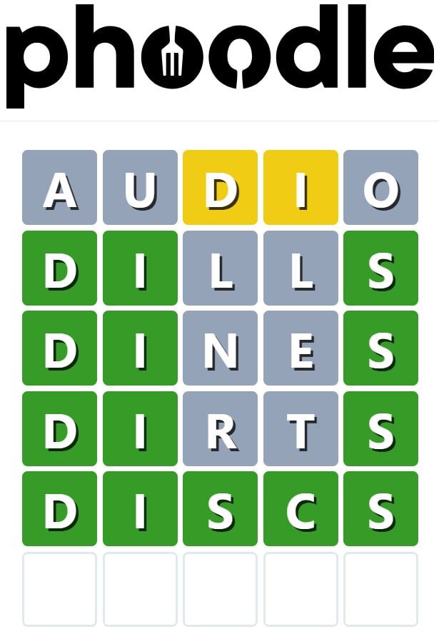 Phoodle is another Wordle-inspired game we have found, which is another food-related game. Players need to guess the five-letter food-related term, which can be anything from appliances to famous chefs and more.