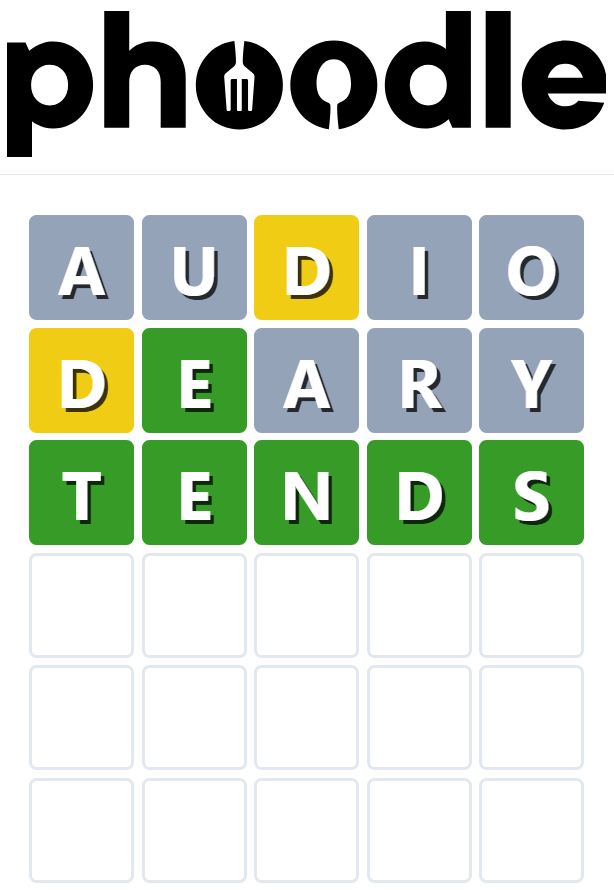 Phoodle is another Wordle-inspired game we have found, which is another food-related game. Players need to guess the five-letter food-related term, which can be anything from appliances to famous chefs and more.