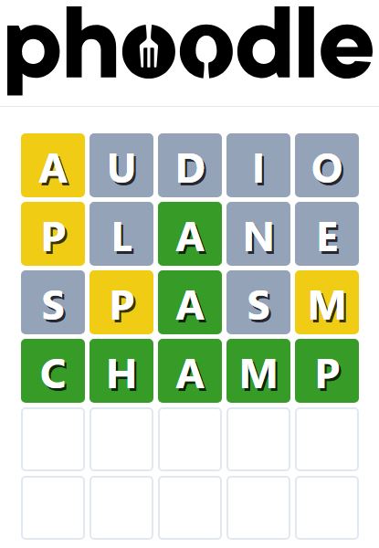Phoodle is another Wordle-inspired game we have found, which is another food-related game. Players need to guess the five-letter food-related term, which can be anything from appliances to famous chefs and more.