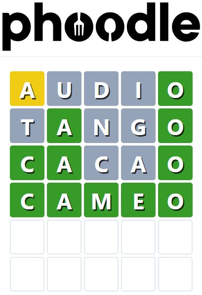 Phoodle is another Wordle-inspired game we have found, which is another food-related game. Players need to guess the five-letter food-related term, which can be anything from appliances to famous chefs and more.