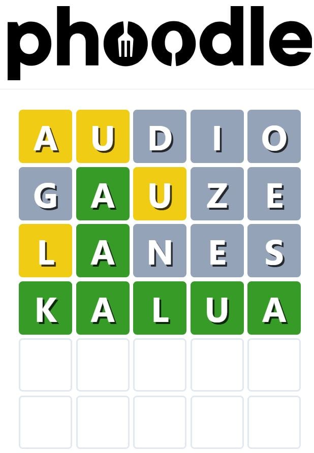 Phoodle is another Wordle-inspired game we have found, which is another food-related game. Players need to guess the five-letter food-related term, which can be anything from appliances to famous chefs and more.