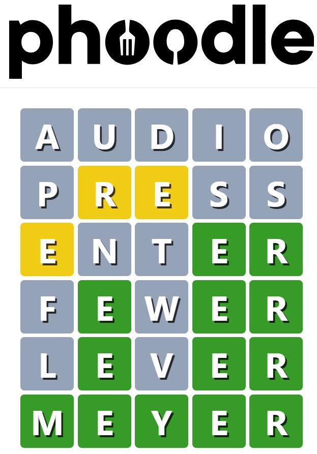 Phoodle is another Wordle-inspired game we have found, which is another food-related game. Players need to guess the five-letter food-related term, which can be anything from appliances to famous chefs and more.