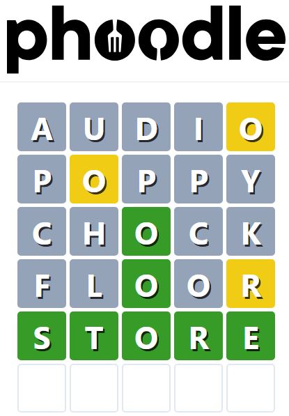 Phoodle is another Wordle-inspired game we have found, which is another food-related game. Players need to guess the five-letter food-related term, which can be anything from appliances to famous chefs and more.