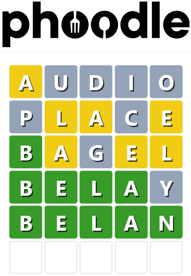 Phoodle is another Wordle-inspired game we have found, which is another food-related game. Players need to guess the five-letter food-related term, which can be anything from appliances to famous chefs and more.