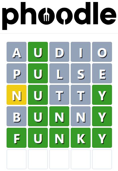 Phoodle is another Wordle-inspired game we have found, which is another food-related game. Players need to guess the five-letter food-related term, which can be anything from appliances to famous chefs and more.