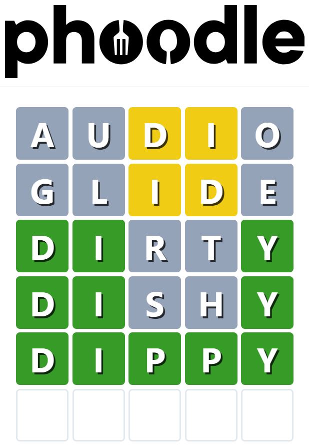 Phoodle is another Wordle-inspired game we have found, which is another food-related game. Players need to guess the five-letter food-related term, which can be anything from appliances to famous chefs and more.