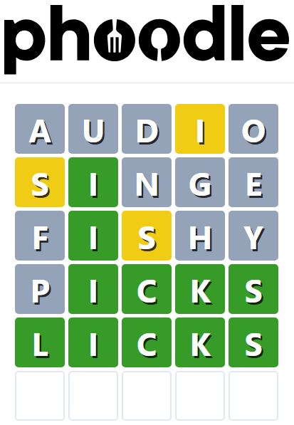 Phoodle is another Wordle-inspired game we have found, which is another food-related game. Players need to guess the five-letter food-related term, which can be anything from appliances to famous chefs and more.