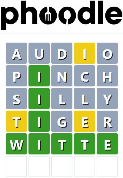 Phoodle is another Wordle-inspired game we have found, which is another food-related game. Players need to guess the five-letter food-related term, which can be anything from appliances to famous chefs and more.
