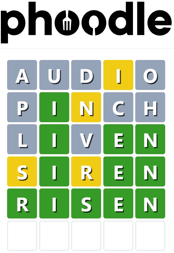 Phoodle is another Wordle-inspired game we have found, which is another food-related game. Players need to guess the five-letter food-related term, which can be anything from appliances to famous chefs and more.
