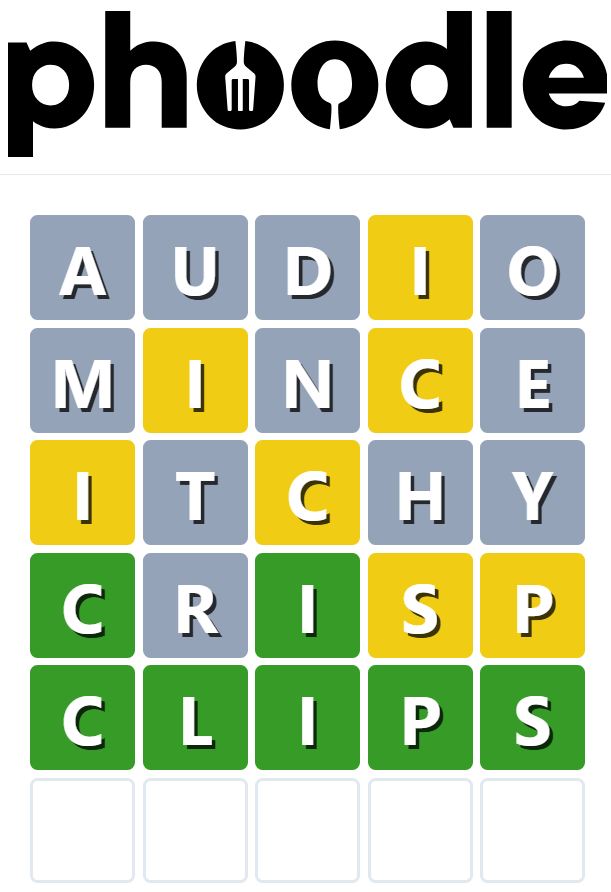 Phoodle is another Wordle-inspired game we have found, which is another food-related game. Players need to guess the five-letter food-related term, which can be anything from appliances to famous chefs and more.