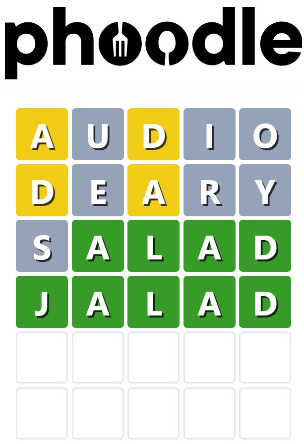 Phoodle is another Wordle-inspired game we have found, which is another food-related game. Players need to guess the five-letter food-related term, which can be anything from appliances to famous chefs and more.