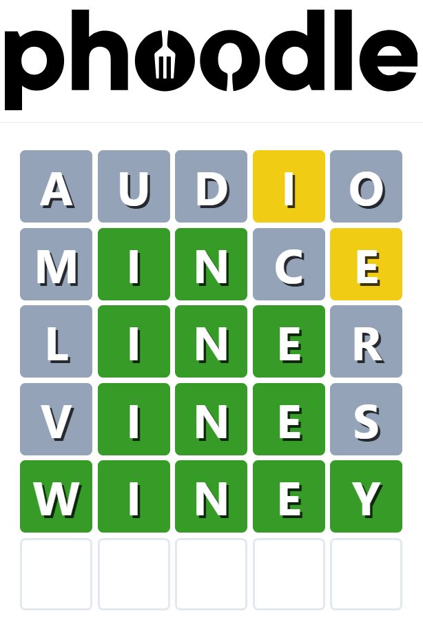 Phoodle is another Wordle-inspired game we have found, which is another food-related game. Players need to guess the five-letter food-related term, which can be anything from appliances to famous chefs and more.
