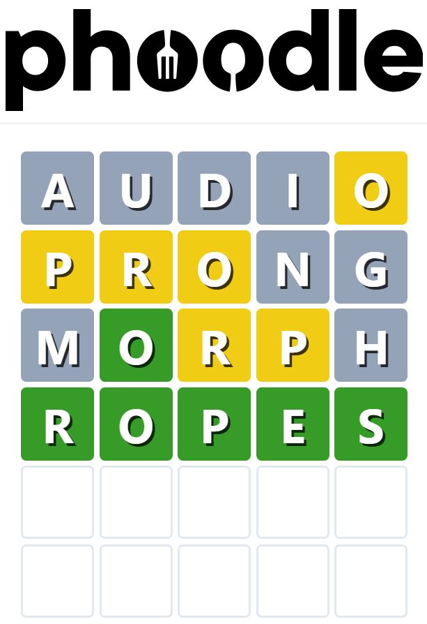 Phoodle is another Wordle-inspired game we have found, which is another food-related game. Players need to guess the five-letter food-related term, which can be anything from appliances to famous chefs and more.