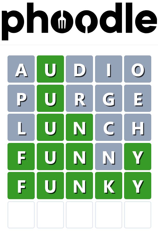 Phoodle is another Wordle-inspired game we have found, which is another food-related game. Players need to guess the five-letter food-related term, which can be anything from appliances to famous chefs and more.