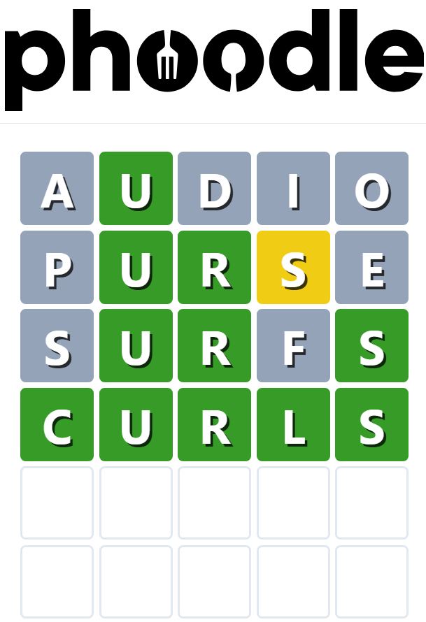 Phoodle is another Wordle-inspired game we have found, which is another food-related game. Players need to guess the five-letter food-related term, which can be anything from appliances to famous chefs and more.