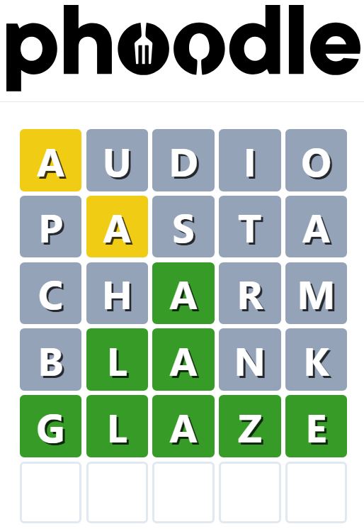 Phoodle is another Wordle-inspired game we have found, which is another food-related game. Players need to guess the five-letter food-related term, which can be anything from appliances to famous chefs and more.