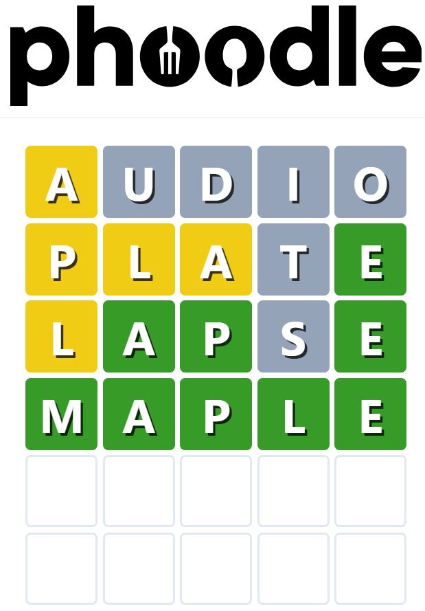 Phoodle is another Wordle-inspired game we have found, which is another food-related game. Players need to guess the five-letter food-related term, which can be anything from appliances to famous chefs and more.