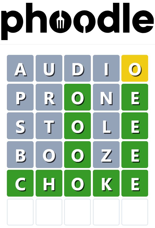 Phoodle is another Wordle-inspired game we have found, which is another food-related game. Players need to guess the five-letter food-related term, which can be anything from appliances to famous chefs and more.