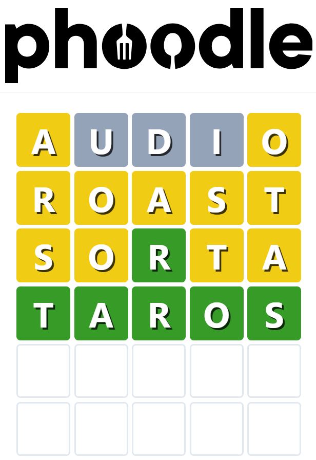 Phoodle is another Wordle-inspired game we have found, which is another food-related game. Players need to guess the five-letter food-related term, which can be anything from appliances to famous chefs and more.