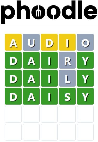 Phoodle is another Wordle-inspired game we have found, which is another food-related game. Players need to guess the five-letter food-related term, which can be anything from appliances to famous chefs and more.