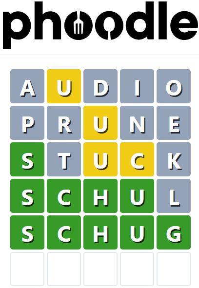 Phoodle is another Wordle-inspired game we have found, which is another food-related game. Players need to guess the five-letter food-related term, which can be anything from appliances to famous chefs and more.