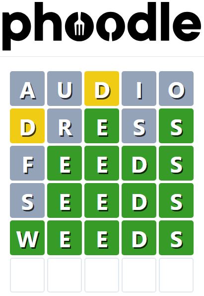 Phoodle is another Wordle-inspired game we have found, which is another food-related game. Players need to guess the five-letter food-related term, which can be anything from appliances to famous chefs and more.