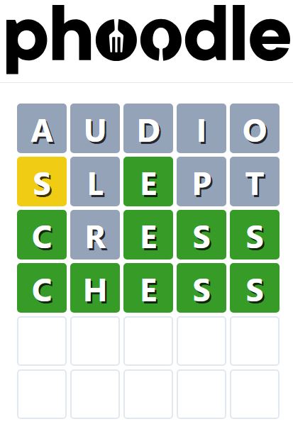 Phoodle is another Wordle-inspired game we have found, which is another food-related game. Players need to guess the five-letter food-related term, which can be anything from appliances to famous chefs and more.