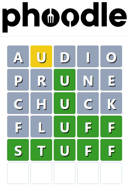 Phoodle is another Wordle-inspired game we have found, which is another food-related game. Players need to guess the five-letter food-related term, which can be anything from appliances to famous chefs and more.