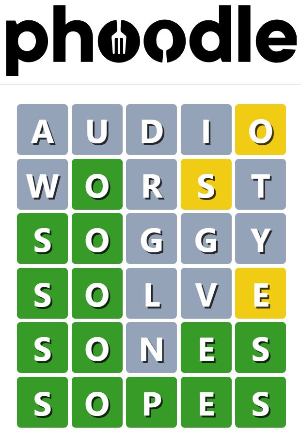Phoodle is another Wordle-inspired game we have found, which is another food-related game. Players need to guess the five-letter food-related term, which can be anything from appliances to famous chefs and more.