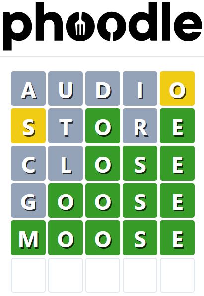 Phoodle is another Wordle-inspired game we have found, which is another food-related game. Players need to guess the five-letter food-related term, which can be anything from appliances to famous chefs and more.