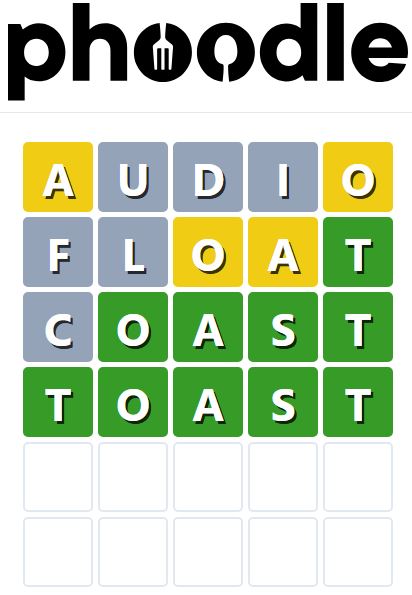 Phoodle is another Wordle-inspired game we have found, which is another food-related game. Players need to guess the five-letter food-related term, which can be anything from appliances to famous chefs and more.
