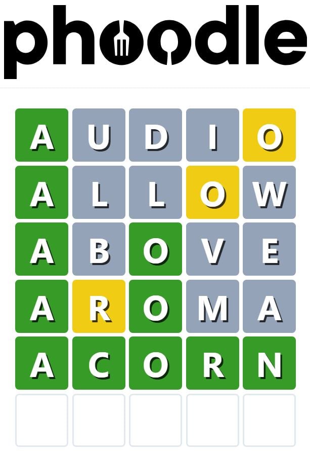 Phoodle is another Wordle-inspired game we have found, which is another food-related game. Players need to guess the five-letter food-related term, which can be anything from appliances to famous chefs and more.