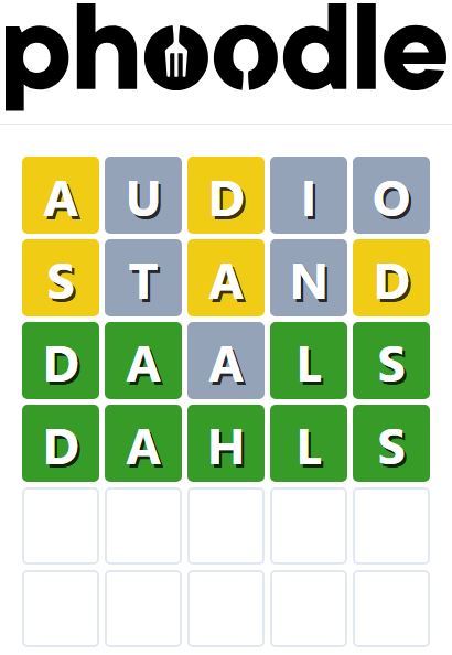 Phoodle is another Wordle-inspired game we have found, which is another food-related game. Players need to guess the five-letter food-related term, which can be anything from appliances to famous chefs and more.
