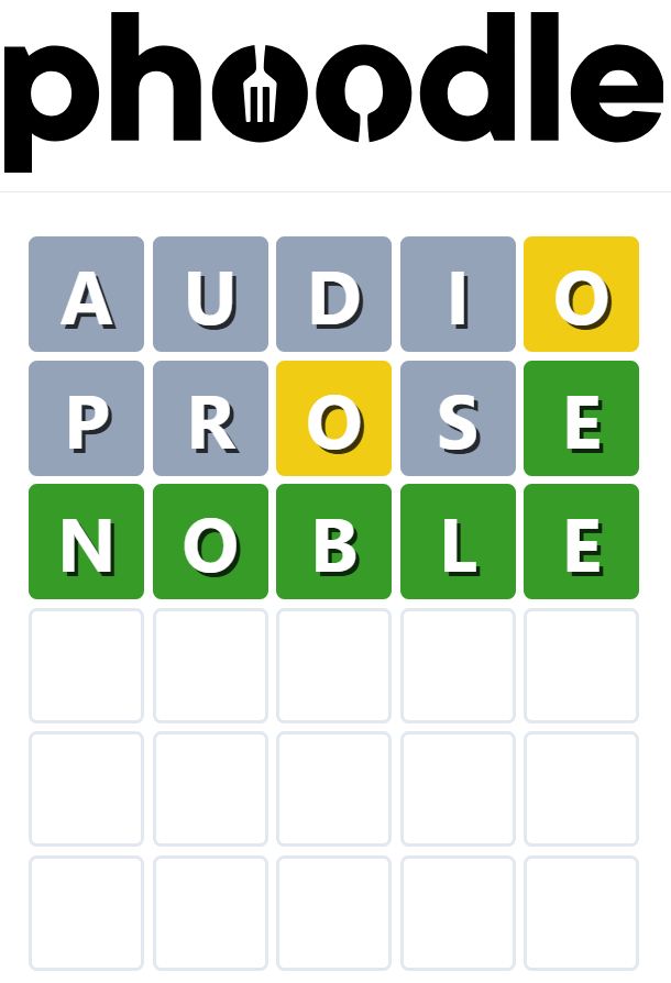 Phoodle is another Wordle-inspired game we have found, which is another food-related game. Players need to guess the five-letter food-related term, which can be anything from appliances to famous chefs and more.