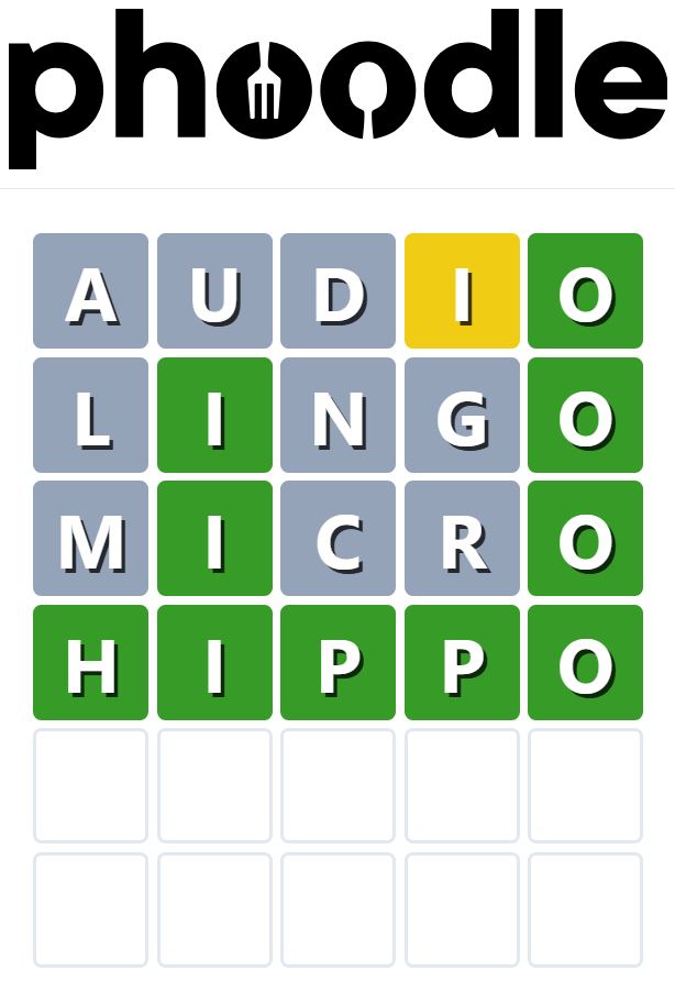 Phoodle is another Wordle-inspired game we have found, which is another food-related game. Players need to guess the five-letter food-related term, which can be anything from appliances to famous chefs and more.
