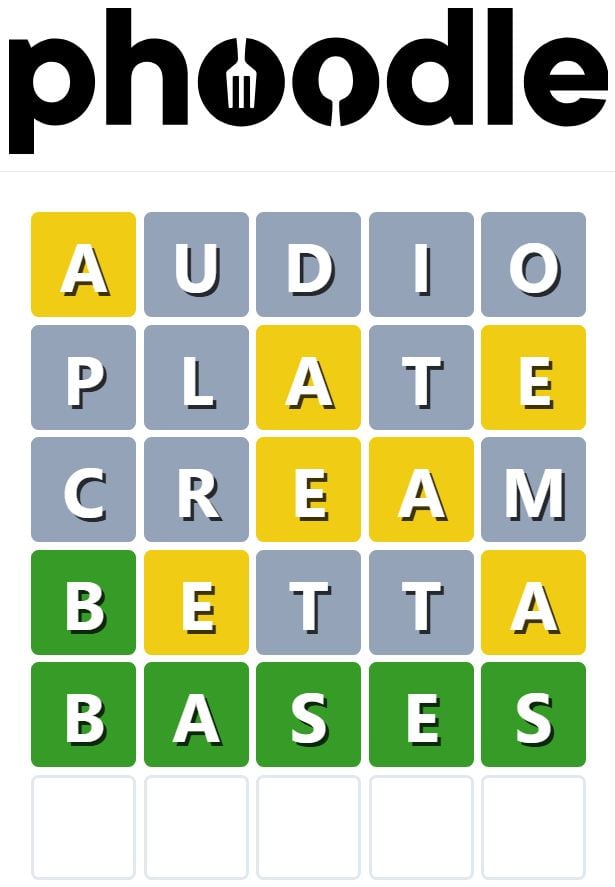 Phoodle is another Wordle-inspired game we have found, which is another food-related game. Players need to guess the five-letter food-related term, which can be anything from appliances to famous chefs and more.