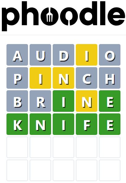 Phoodle is another Wordle-inspired game we have found, which is another food-related game. Players need to guess the five-letter food-related term, which can be anything from appliances to famous chefs and more.