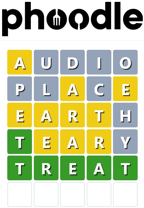 Phoodle is another Wordle-inspired game we have found, which is another food-related game. Players need to guess the five-letter food-related term, which can be anything from appliances to famous chefs and more.