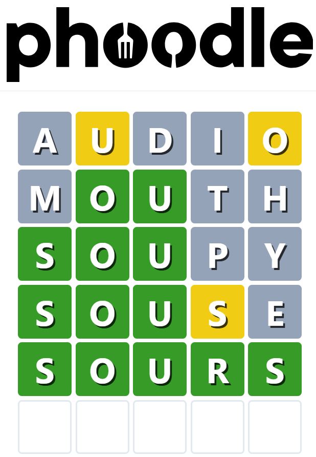 Phoodle is another Wordle-inspired game we have found, which is another food-related game. Players need to guess the five-letter food-related term, which can be anything from appliances to famous chefs and more.