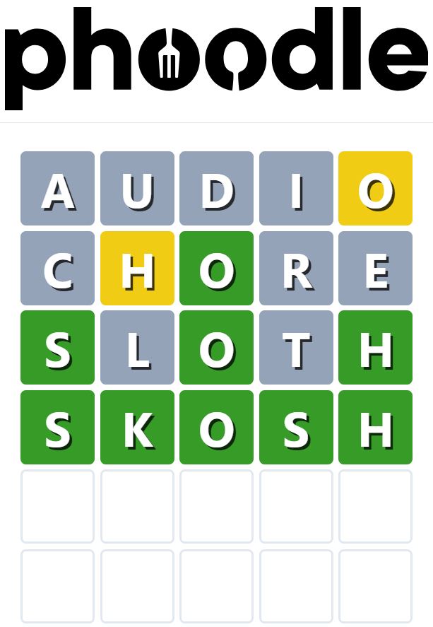 Phoodle is another Wordle-inspired game we have found, which is another food-related game. Players need to guess the five-letter food-related term, which can be anything from appliances to famous chefs and more.