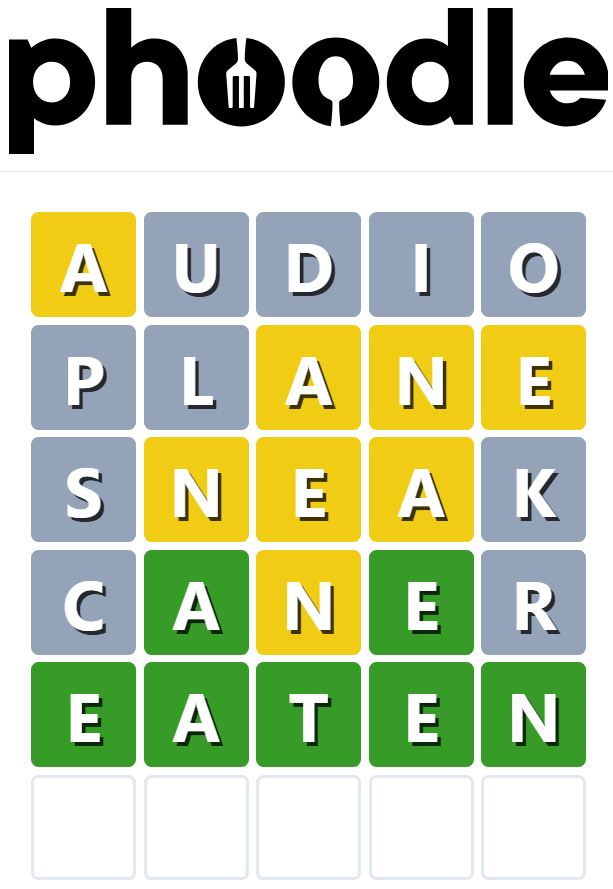 Phoodle is another Wordle-inspired game we have found, which is another food-related game. Players need to guess the five-letter food-related term, which can be anything from appliances to famous chefs and more.